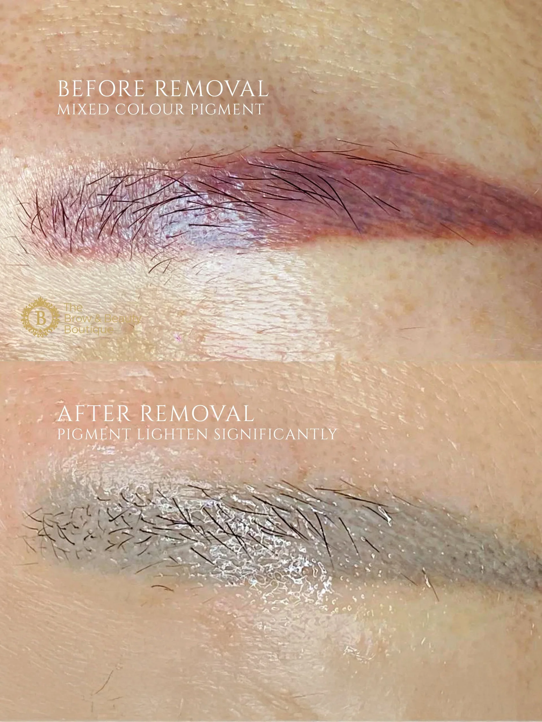 Use of RF technology to loosen pigments deeply embedded in the dermis layers. during this process your eyes will be covered using cotton pads to prevent excessive eye movement which can affect removal targeting